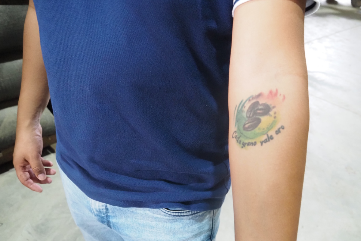 Un empleado de JSA nos lleva por el proceso de elaboración del café y nos enseña las máquinas que se utilizan en él. Me fijo en un colorido tatuaje de un grano de café en su brazo: "Me lo hice en honor a mi padre, que también es un dedicado cultivador de café", me dice. Alrededor del grano de café está escrito 'Cada grano vale oro'.